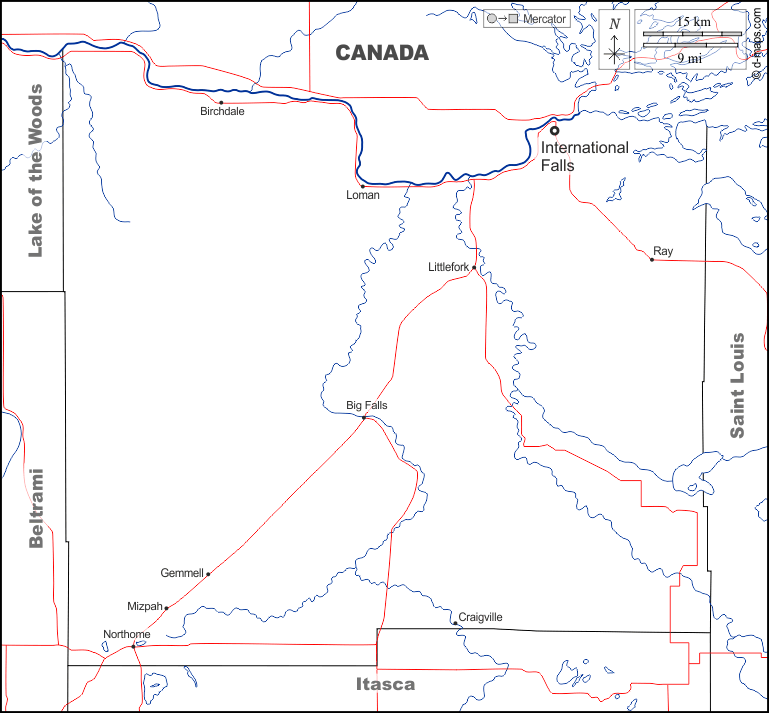 d-maps > संयुक्त राज्य > मिनेसोटा > कूचिहींग > सीमाओं, जल-सर्वेक्षण, मुख्य शहरों, सड़कों, नाम, सफेद
