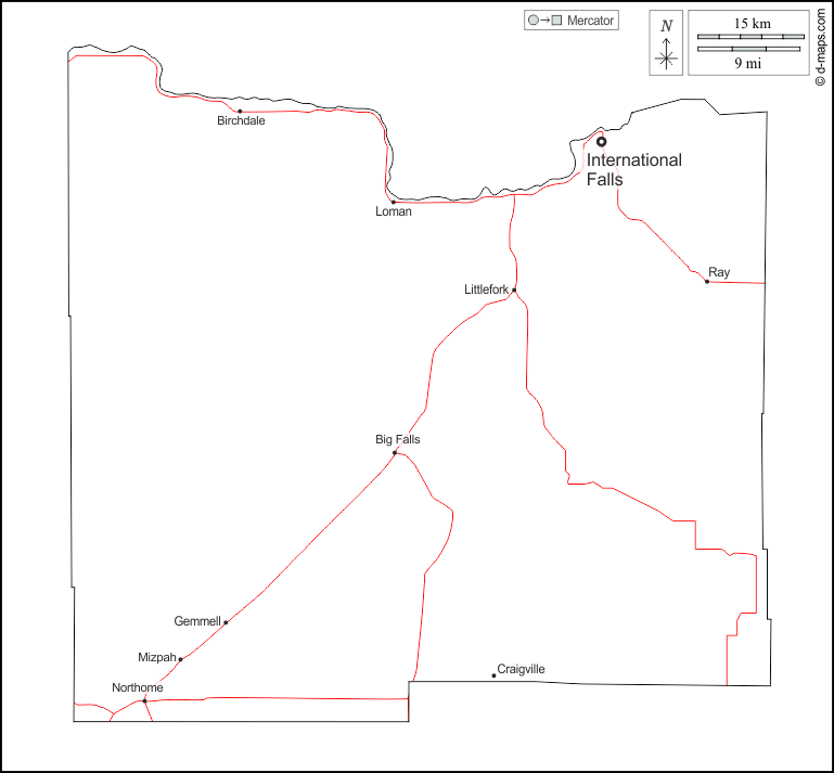 d-maps > संयुक्त राज्य > मिनेसोटा > कूचिहींग > बाह्यरेखा, मुख्य शहरों, सड़कों, नाम, सफेद