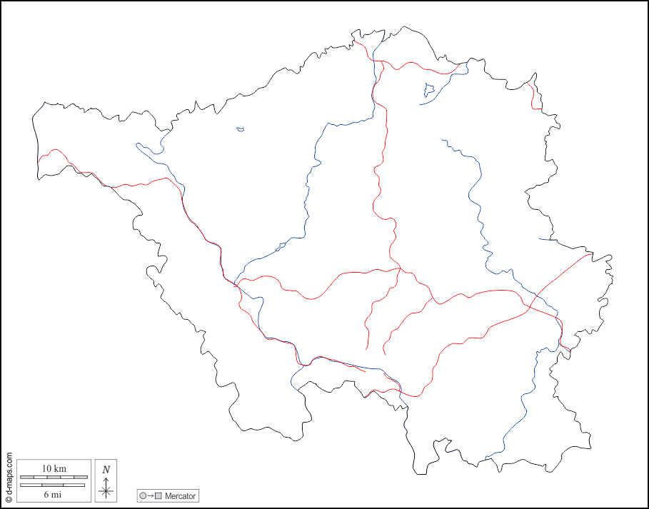 d-maps > यूरोप > जर्मनी > सारलैंड > बाह्यरेखा, जल-सर्वेक्षण, सड़कों, सफेद
