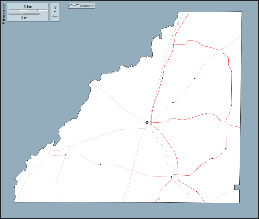 d-maps > संयुक्त राज्य > जॉर्जिया > मिशेल > बाह्यरेखा, मुख्य शहरों, सड़कों