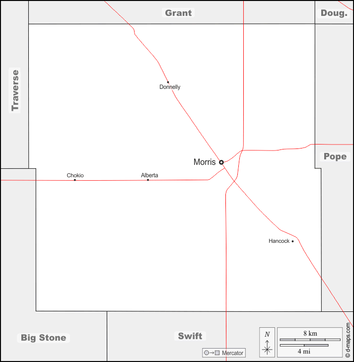 d-maps > संयुक्त राज्य > मिनेसोटा > स्टीवंस > सीमाओं, मुख्य शहरों, सड़कों, नाम
