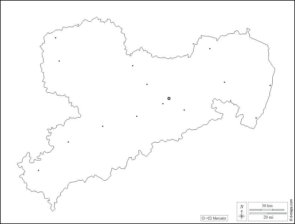 d-maps > यूरोप > जर्मनी > सैक्सोनी का स्वतंत्र राज्य > बाह्यरेखा, मुख्य शहरों, सफेद