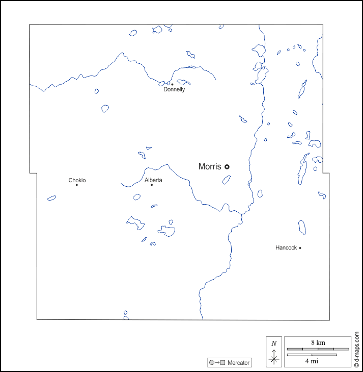 d-maps > संयुक्त राज्य > मिनेसोटा > स्टीवंस > बाह्यरेखा, जल-सर्वेक्षण, मुख्य शहरों, नाम, सफेद