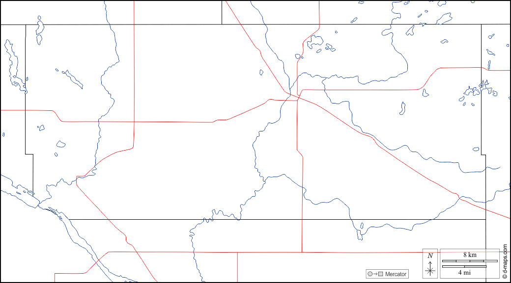 d-maps > संयुक्त राज्य > मिनेसोटा > तीव्र > सीमाओं, जल-सर्वेक्षण, सड़कों, सफेद