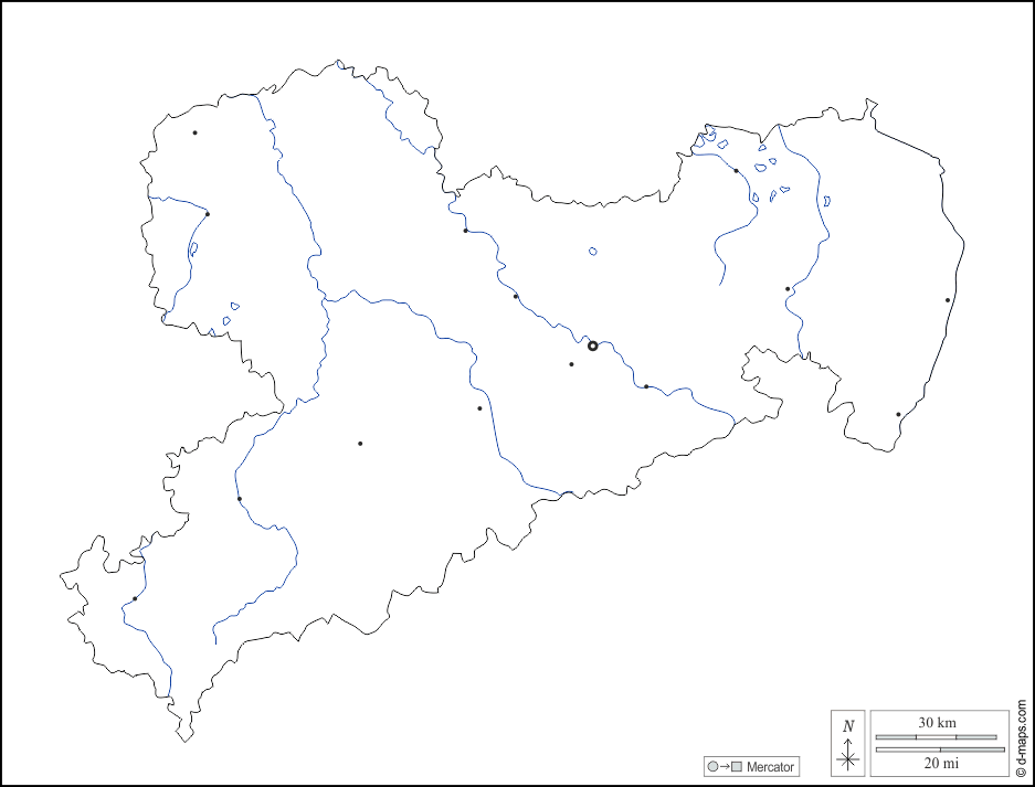 d-maps > यूरोप > जर्मनी > सैक्सोनी का स्वतंत्र राज्य > बाह्यरेखा, जल-सर्वेक्षण, मुख्य शहरों, सफेद