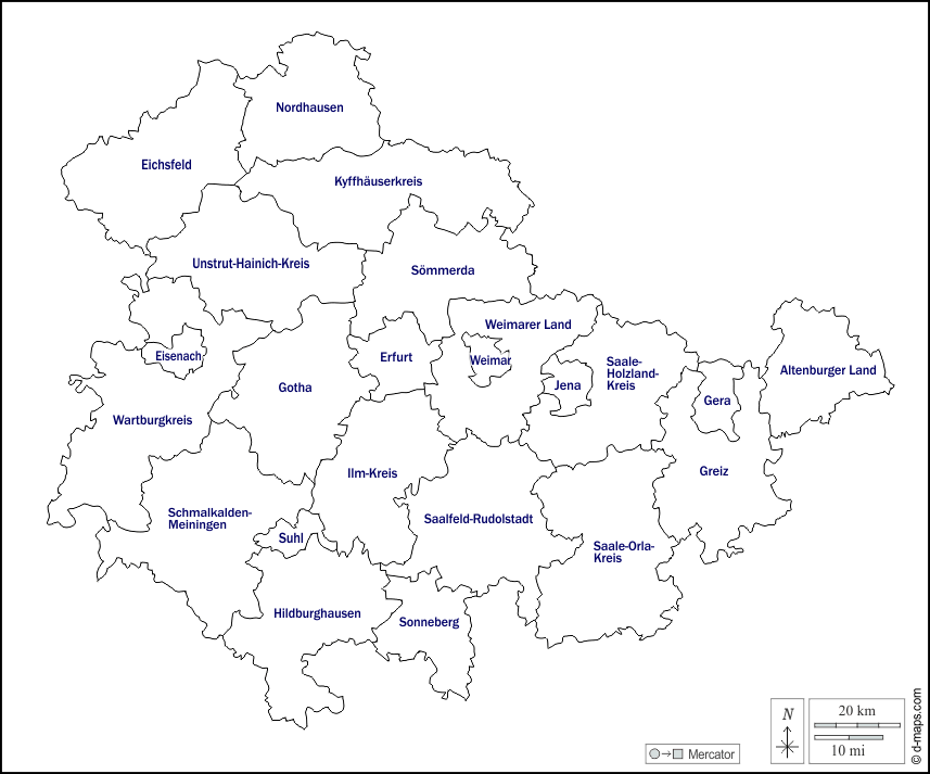 d-maps > यूरोप > जर्मनी > थुरिंगिया का स्वतंत्र राज्य > बाह्यरेखा, जिलों, नाम, सफेद