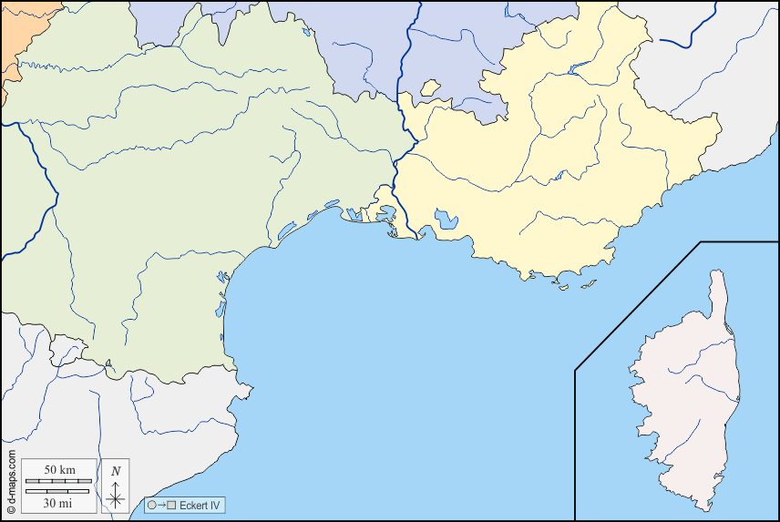 d-maps > यूरोप > फ़्रान्स > दक्षिण > सीमाओं, जल-सर्वेक्षण, क्षेत्रों, रंग