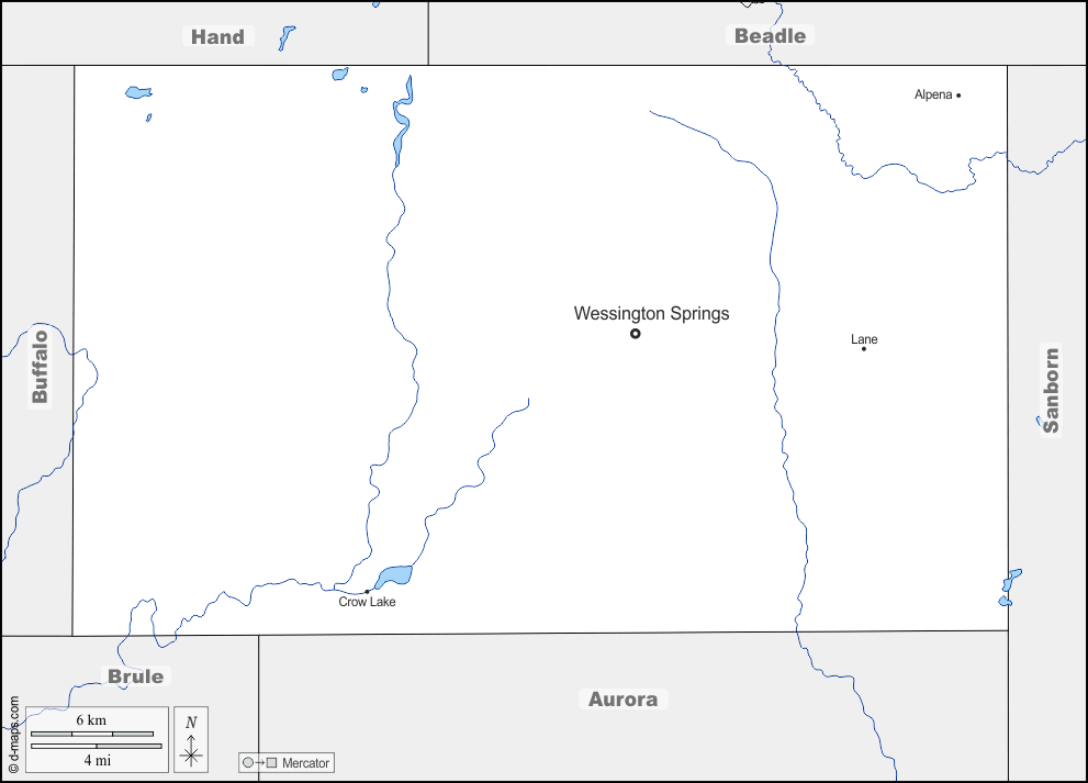 d-maps > संयुक्त राज्य > साउथ डकोटा > जेरालड > सीमाओं, जल-सर्वेक्षण, मुख्य शहरों, नाम