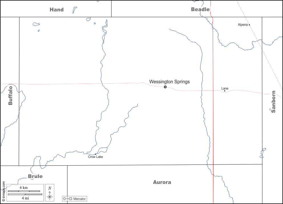 d-maps > संयुक्त राज्य > साउथ डकोटा > जेरालड > सीमाओं, जल-सर्वेक्षण, मुख्य शहरों, सड़कों, नाम, सफेद