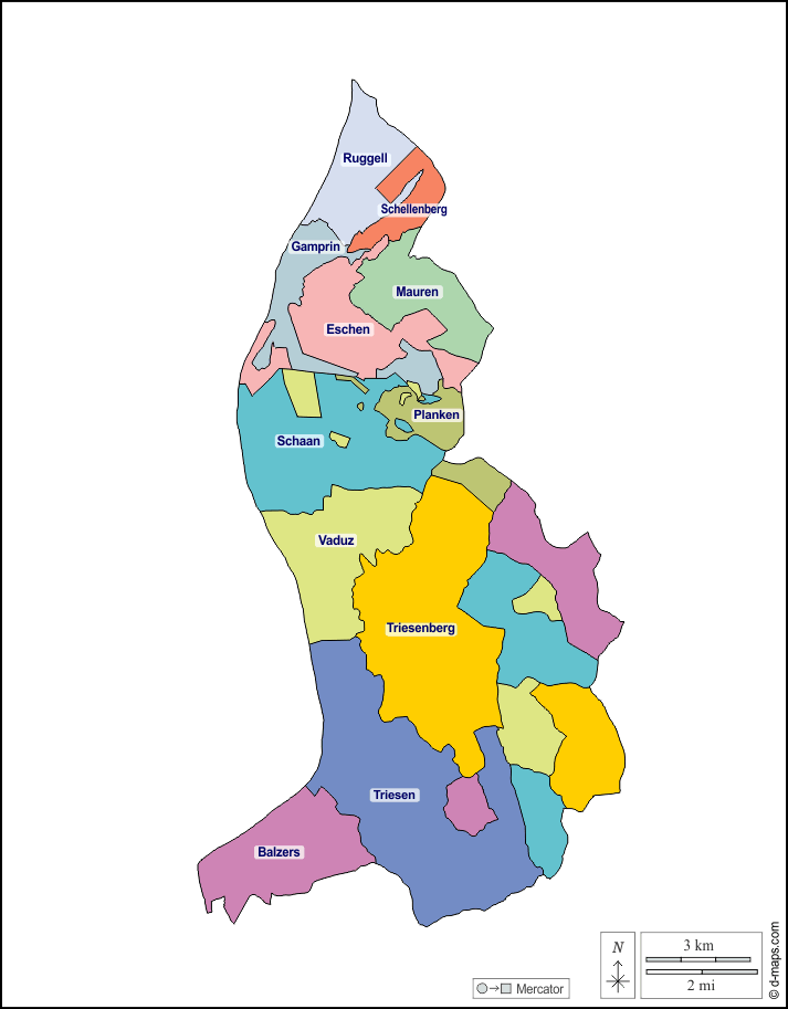 d-maps > यूरोप > लिख्टेंश्टाइन > बाह्यरेखा, नगर पालिकाओं, नाम, रंग, सफेद