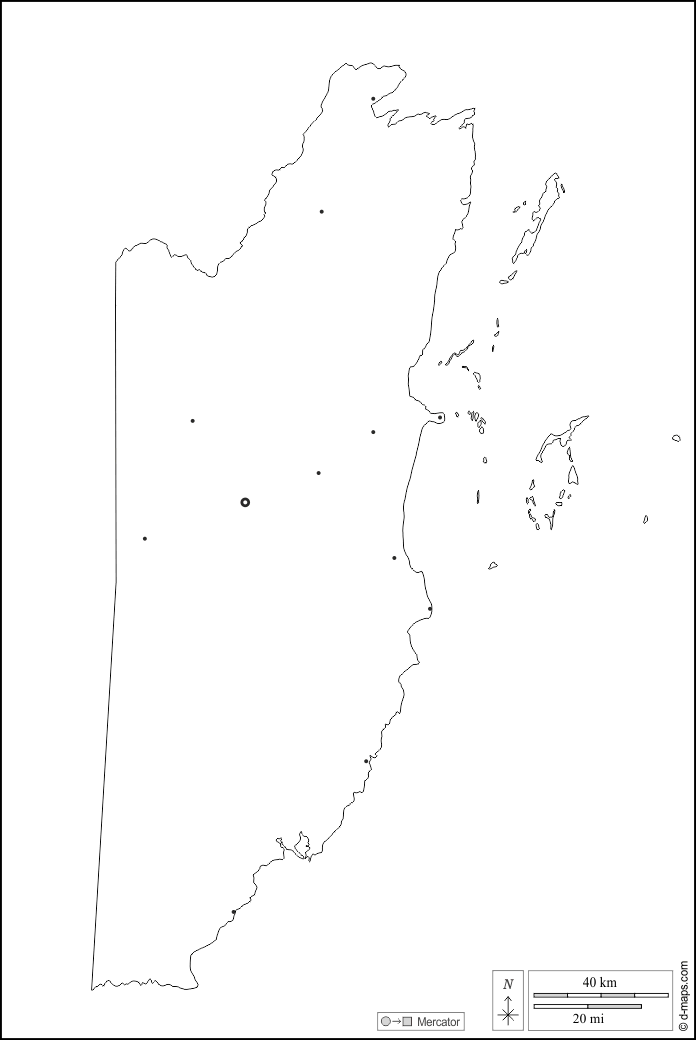 d-maps > महाअमेरिका > बेलीज़ > बाह्यरेखा, मुख्य शहरों, सफेद