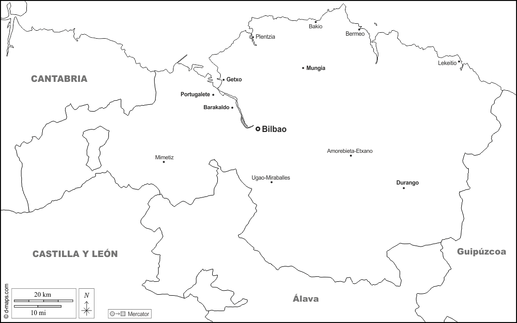 d-maps > यूरोप > स्पेन > बिस्के > सीमाओं, मुख्य शहरों, नाम, सफेद