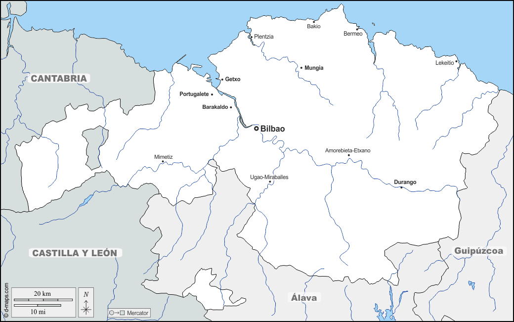 d-maps > यूरोप > स्पेन > बिस्के > सीमाओं, जल-सर्वेक्षण, मुख्य शहरों, नाम