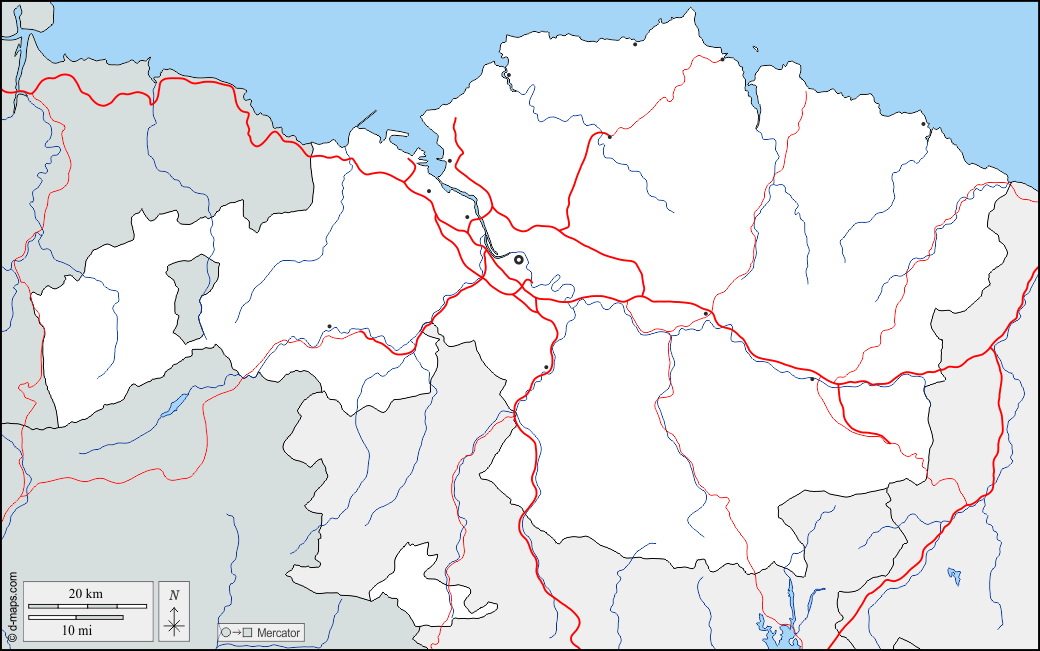 d-maps > यूरोप > स्पेन > बिस्के > सीमाओं, जल-सर्वेक्षण, मुख्य शहरों, सड़कों