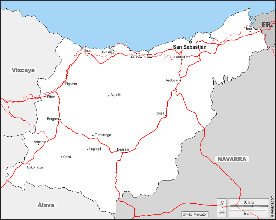 d-maps > यूरोप > स्पेन > गिपुज़कोआ > सीमाओं, मुख्य शहरों, सड़कों, नाम