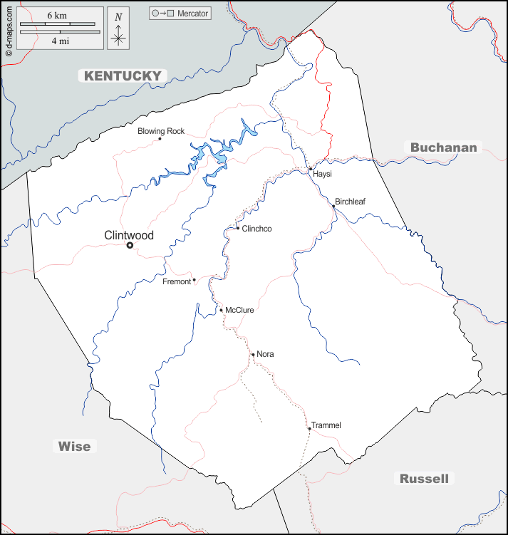 d-maps > संयुक्त राज्य > वर्जीनिया > डिकेंसन > सीमाओं, जल-सर्वेक्षण, मुख्य शहरों, सड़कों, नाम