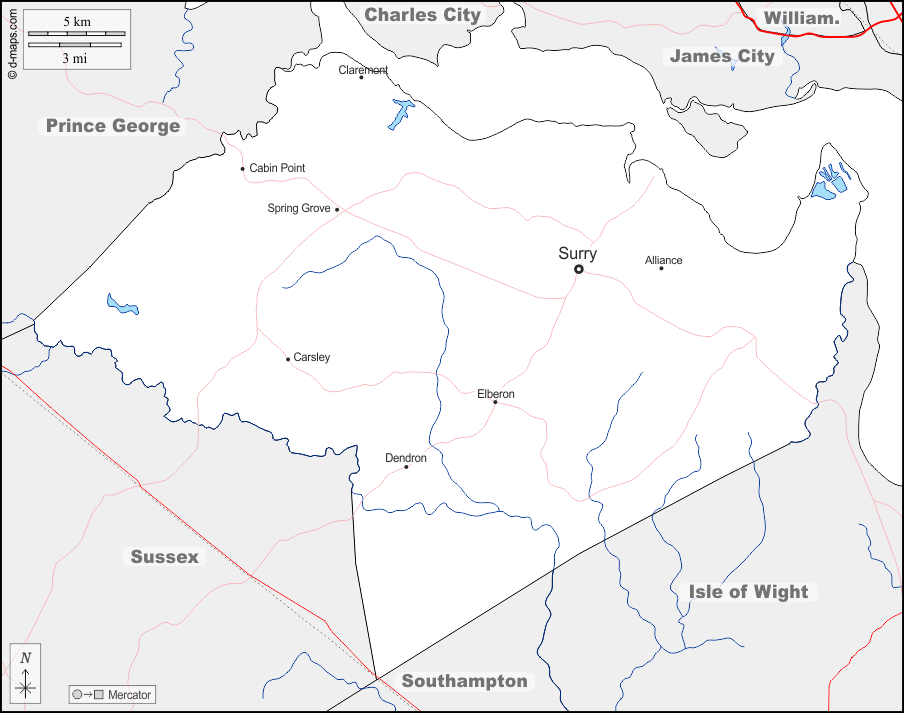 d-maps > संयुक्त राज्य > वर्जीनिया > सरी > सीमाओं, जल-सर्वेक्षण, मुख्य शहरों, सड़कों, नाम