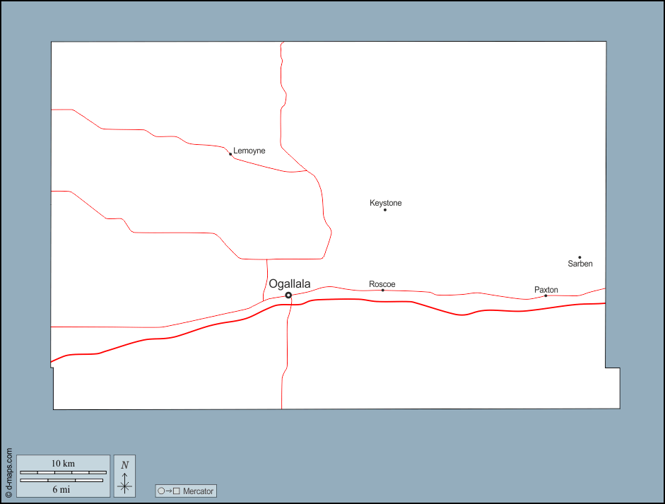 d-maps > संयुक्त राज्य > नेब्रास्का > कीथ > बाह्यरेखा, मुख्य शहरों, सड़कों, नाम