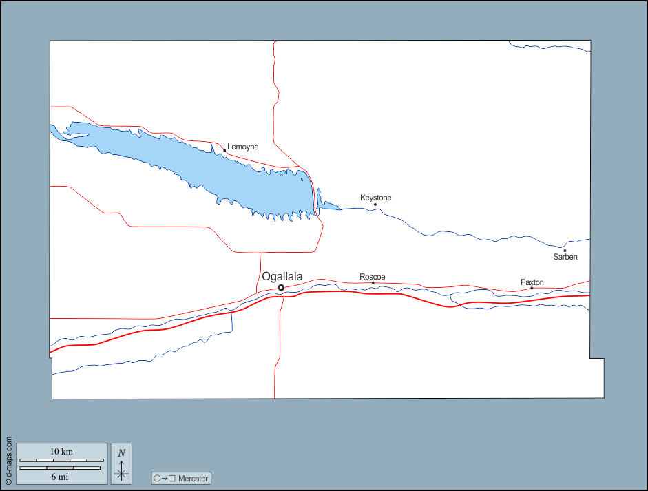 d-maps > संयुक्त राज्य > नेब्रास्का > कीथ > बाह्यरेखा, जल-सर्वेक्षण, मुख्य शहरों, सड़कों, नाम
