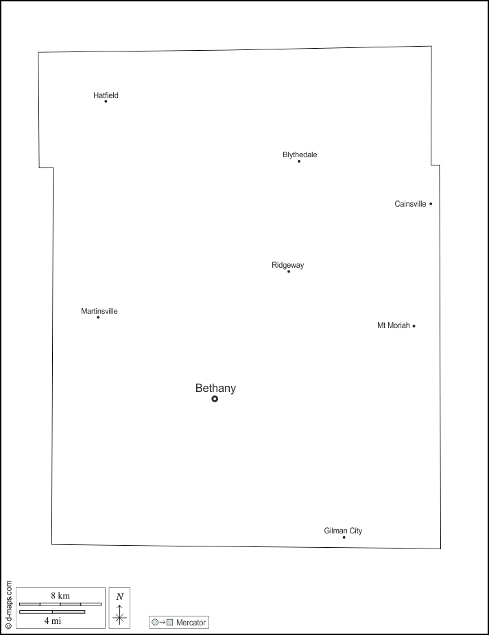 d-maps > संयुक्त राज्य > मिज़ूरी > हैरिसन > बाह्यरेखा, मुख्य शहरों, नाम, सफेद