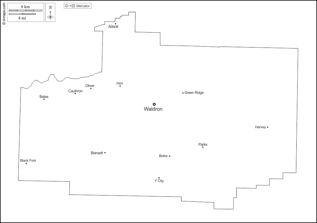 d-maps > संयुक्त राज्य > आर्कन्सा > स्कॉट > बाह्यरेखा, मुख्य शहरों, नाम, सफेद