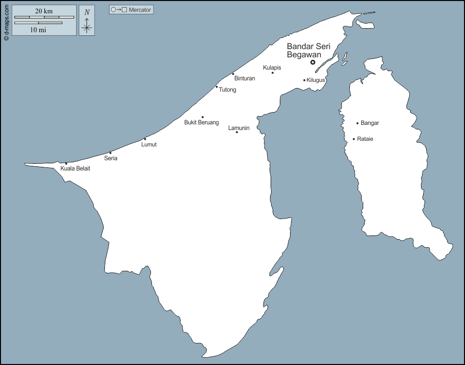 d-maps > एशिया > ब्रुनेई > बाह्यरेखा, मुख्य शहरों, नाम
