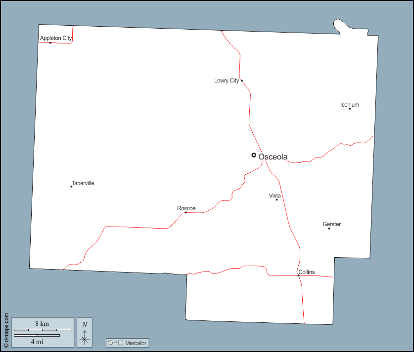d-maps > संयुक्त राज्य > मिज़ूरी > सेंट क्लैर > बाह्यरेखा, मुख्य शहरों, सड़कों, नाम