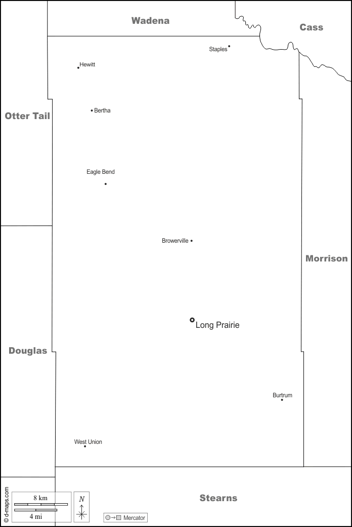 d-maps > संयुक्त राज्य > मिनेसोटा > टोड > सीमाओं, मुख्य शहरों, नाम, सफेद