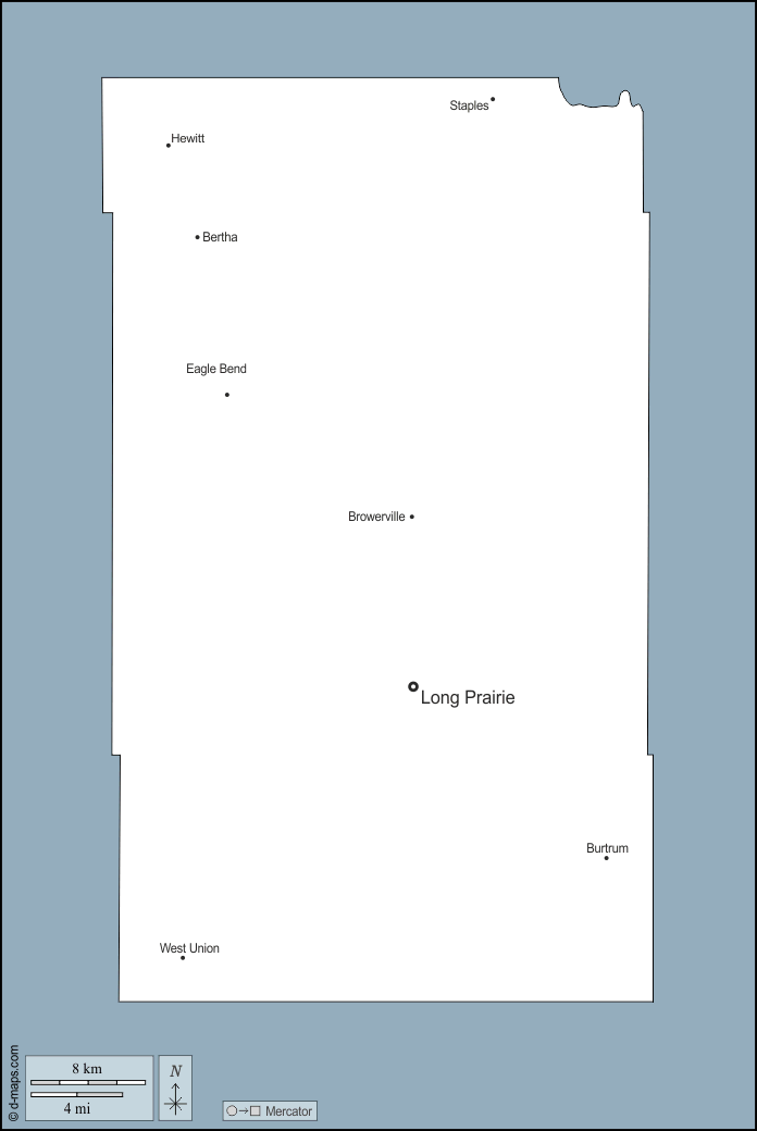 d-maps > संयुक्त राज्य > मिनेसोटा > टोड > बाह्यरेखा, मुख्य शहरों, नाम