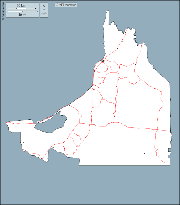 d-maps > महाअमेरिका > मेक्सिको > कम्पेचे > बाह्यरेखा, मुख्य शहरों, सड़कों