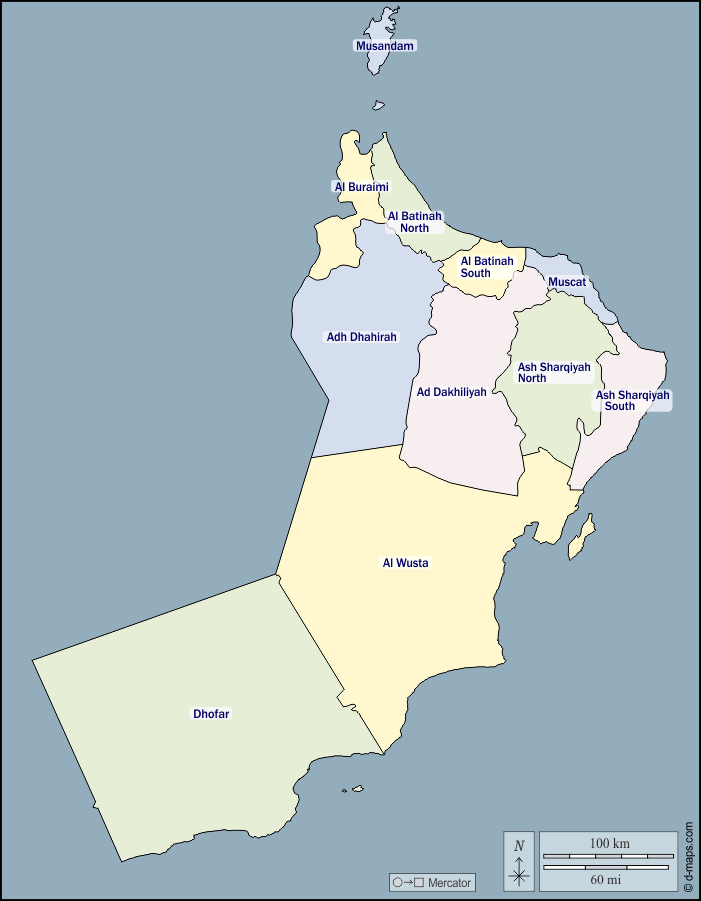 d-maps > एशिया > ओमान > बाह्यरेखा, प्रशासनिक, नाम, रंग