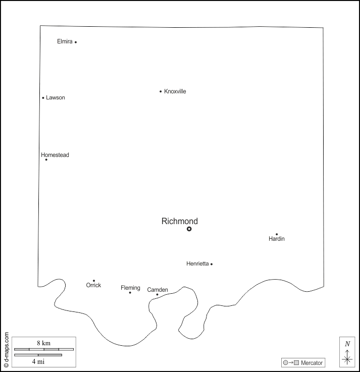 d-maps > संयुक्त राज्य > मिज़ूरी > रे > बाह्यरेखा, मुख्य शहरों, नाम, सफेद