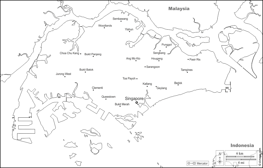 d-maps > एशिया > सिंगापुर > सीमाओं, पड़ोस, नाम, सफेद