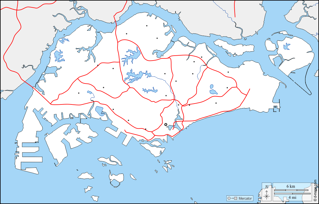 d-maps > एशिया > सिंगापुर > सीमाओं, जल-सर्वेक्षण, पड़ोस, सड़कों