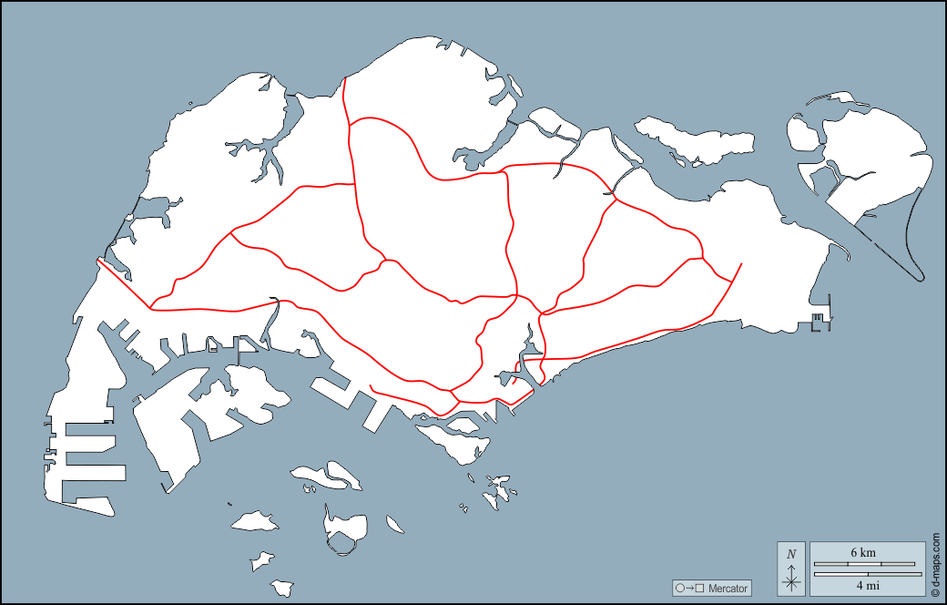 d-maps > एशिया > सिंगापुर > बाह्यरेखा, सड़कों