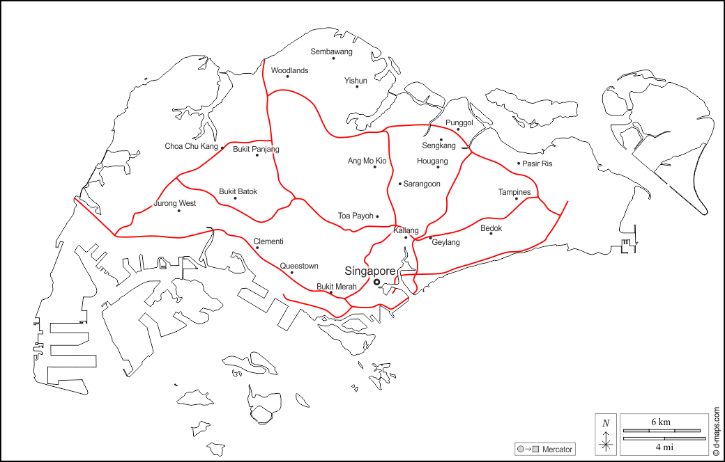 d-maps > एशिया > सिंगापुर > बाह्यरेखा, पड़ोस, सड़कों, नाम, सफेद