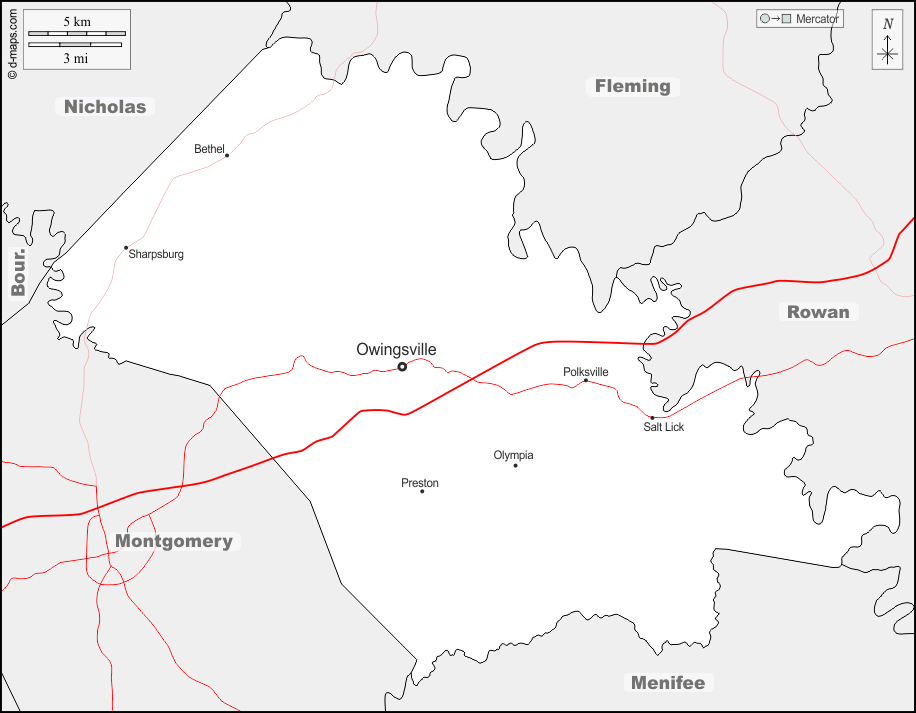 d-maps > संयुक्त राज्य > केंटुकी > स्नान > सीमाओं, मुख्य शहरों, सड़कों, नाम