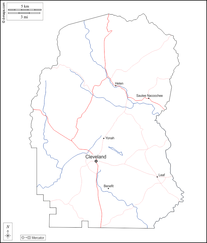 d-maps > संयुक्त राज्य > जॉर्जिया > सफेद > बाह्यरेखा, जल-सर्वेक्षण, मुख्य शहरों, सड़कों, नाम, सफेद