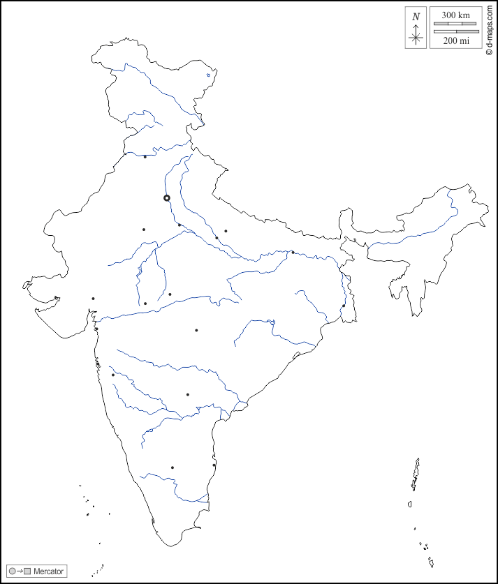 d-maps > एशिया > भारत > भारत > बाह्यरेखा, जल-सर्वेक्षण, मुख्य शहरों, सफेद