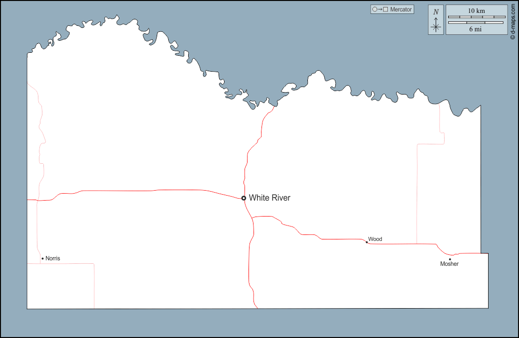 d-maps > संयुक्त राज्य > साउथ डकोटा > अगला > बाह्यरेखा, मुख्य शहरों, सड़कों, नाम