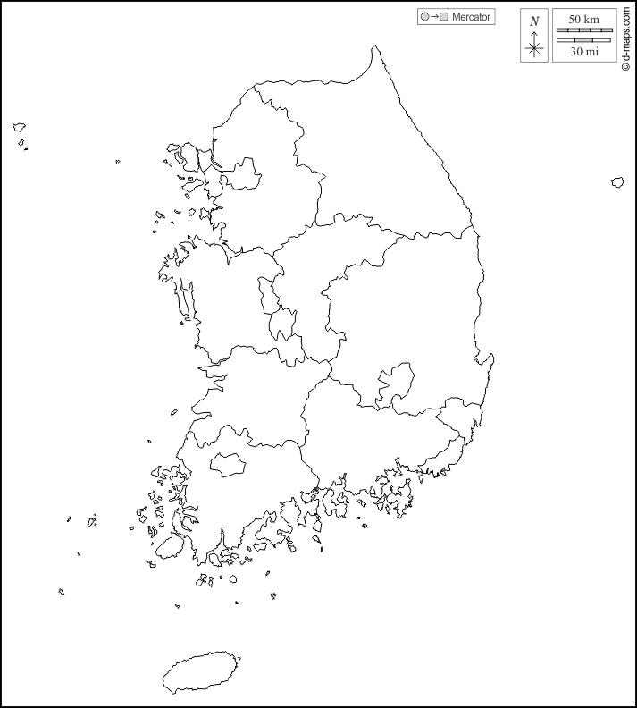 d-maps > एशिया > दक्षिण कोरिया > दक्षिण कोरिया > बाह्यरेखा, प्रांतों, सफेद