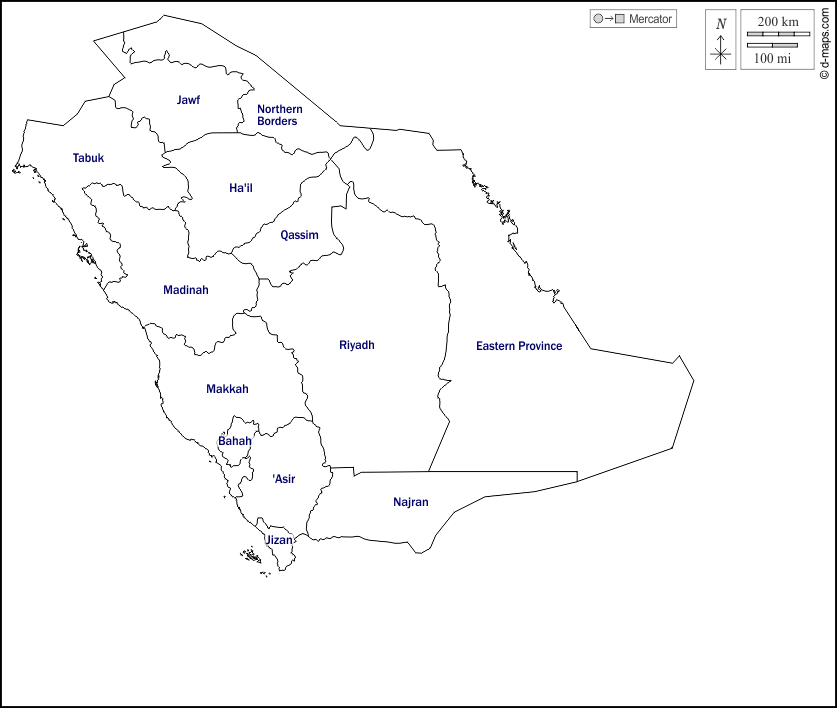 d-maps > एशिया > सऊदी अरब > सऊदी अरब > बाह्यरेखा, अमीरात, नाम, सफेद