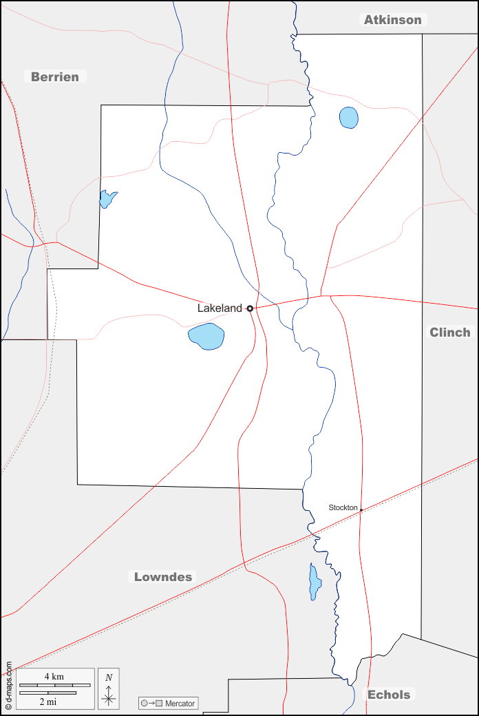d-maps > संयुक्त राज्य > जॉर्जिया > जॉर्जिया दक्षिण > सीमाओं, जल-सर्वेक्षण, मुख्य शहरों, सड़कों, नाम