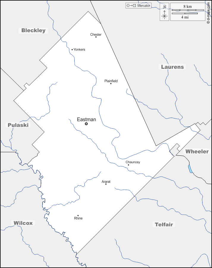 d-maps > संयुक्त राज्य > जॉर्जिया > चकमा > सीमाओं, जल-सर्वेक्षण, मुख्य शहरों, नाम