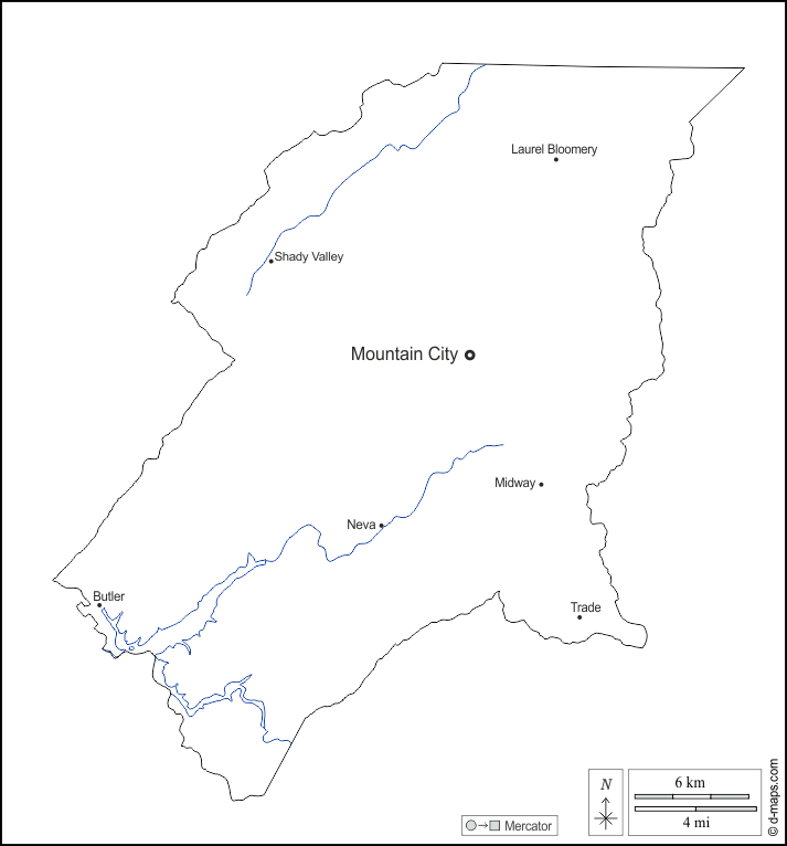 d-maps > संयुक्त राज्य > टेनेसी > जॉनसन > बाह्यरेखा, जल-सर्वेक्षण, मुख्य शहरों, नाम, सफेद