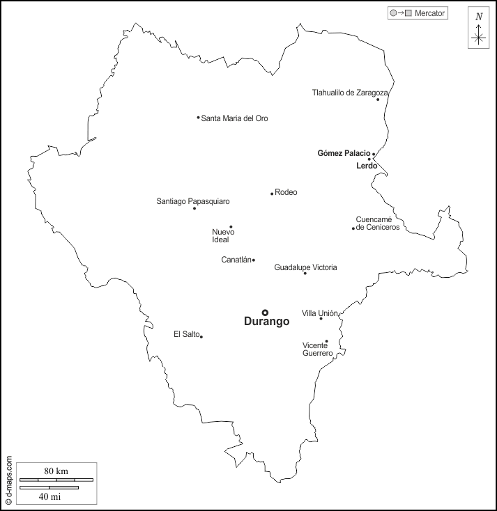 d-maps > महाअमेरिका > मेक्सिको > डुरंगो > बाह्यरेखा, मुख्य शहरों, नाम, सफेद
