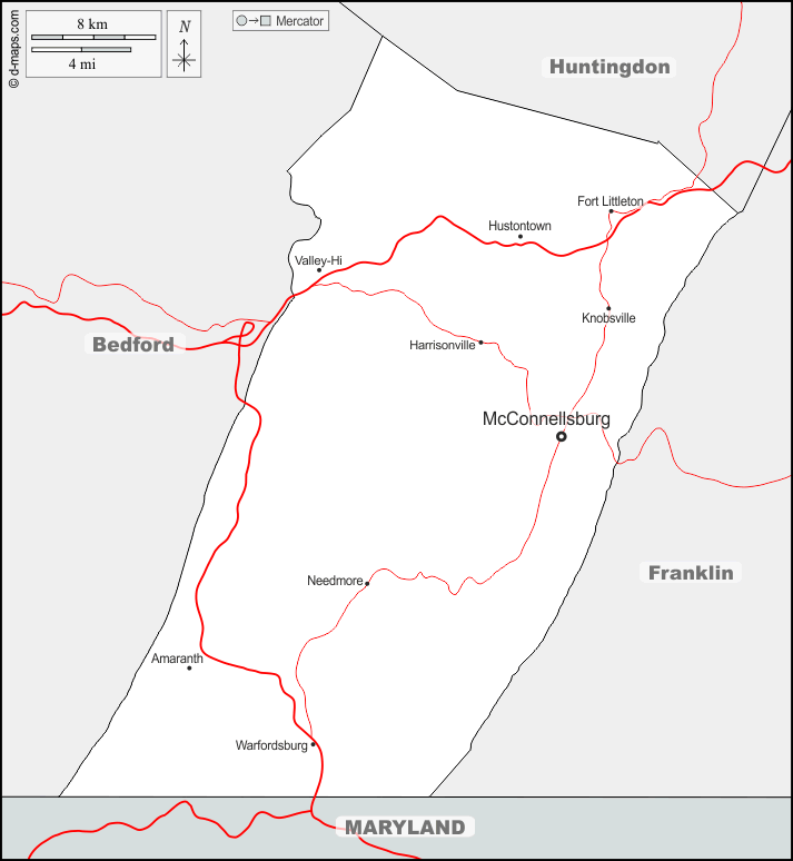 d-maps > संयुक्त राज्य > पेंसिल्वेनिया > फुल्टन > सीमाओं, मुख्य शहरों, सड़कों, नाम