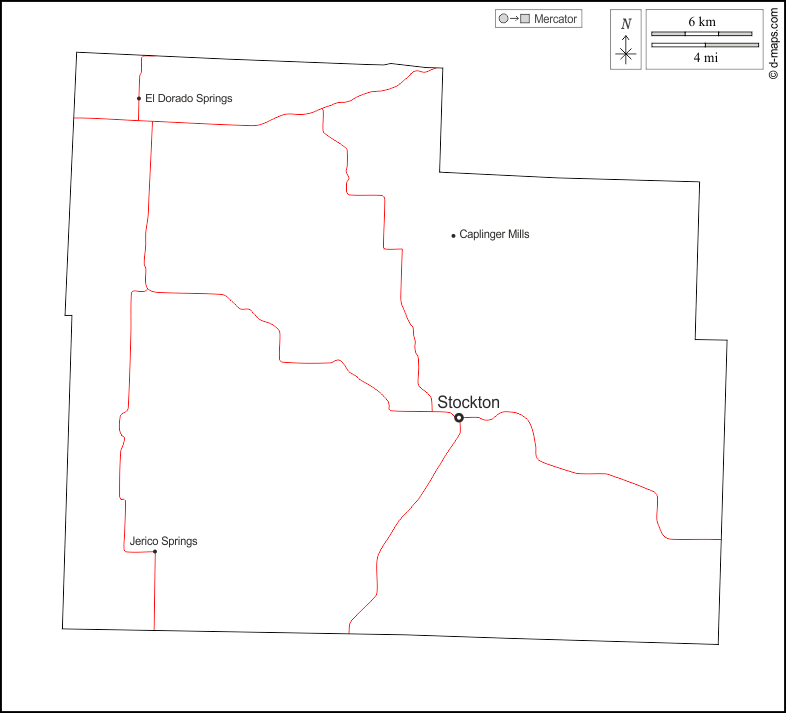 d-maps > संयुक्त राज्य > मिज़ूरी > देवदार > बाह्यरेखा, मुख्य शहरों, सड़कों, नाम, सफेद
