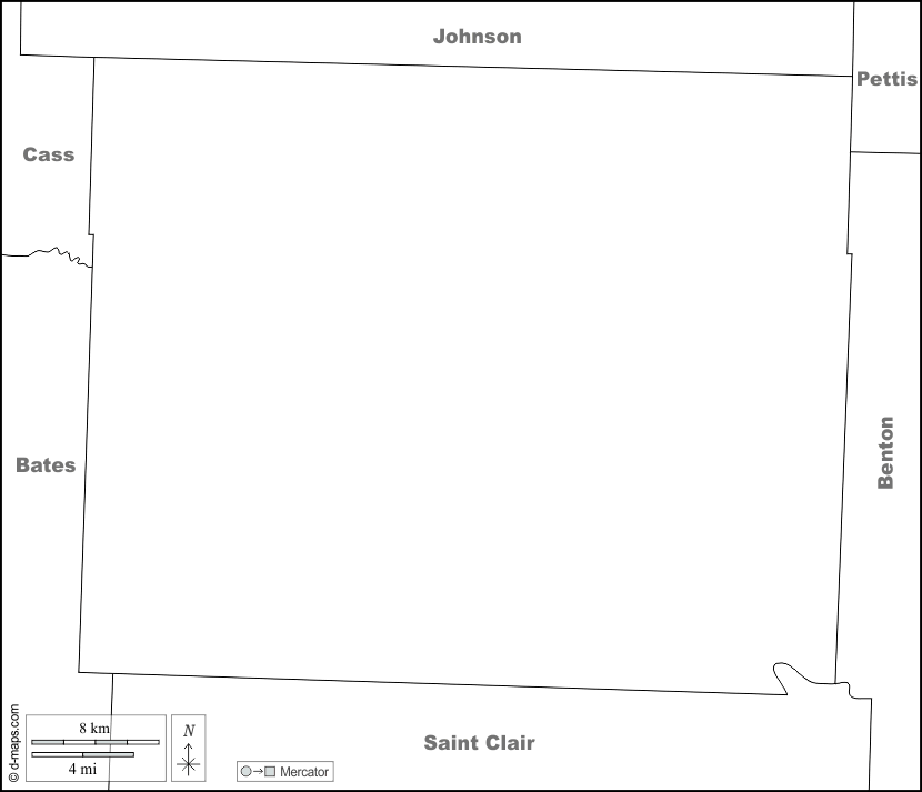 d-maps > संयुक्त राज्य > मिज़ूरी > हेनरी > सीमाओं, नाम, सफेद