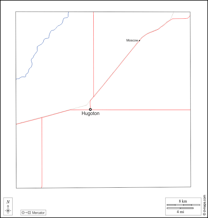 d-maps > संयुक्त राज्य > कैनसस > स्टीवंस > बाह्यरेखा, जल-सर्वेक्षण, मुख्य शहरों, सड़कों, नाम, सफेद
